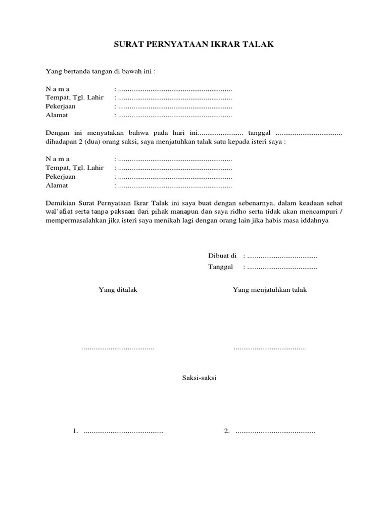 Contoh surat pernyataan ikrar talak contoh m. Format contoh surat permohonan cerai talak (suami yang mengajukan permohonan cerai). (diisi sesuai dengan surat nikah). Contoh surat cerai talak suami dan istri beserta. Kami sepakat cerai hanya dengan membikin surat pernyataan cerai di atas.